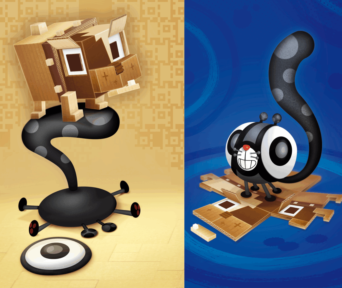 ONN, the square dog, lives in his square house with his square family, while OFF, the round cat, circles his round garden.